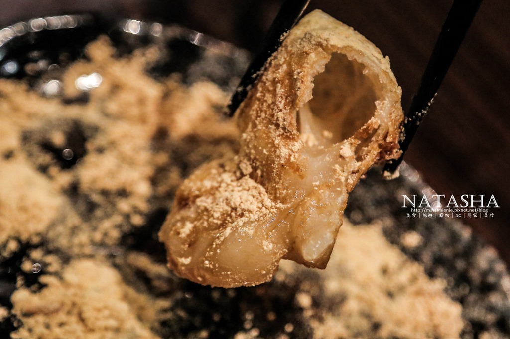 而這裡比較偏向夜市那種,外酥內軟,而搭配的粉也並非花生粉,而是麵茶,另外再淋上一些黑糖,