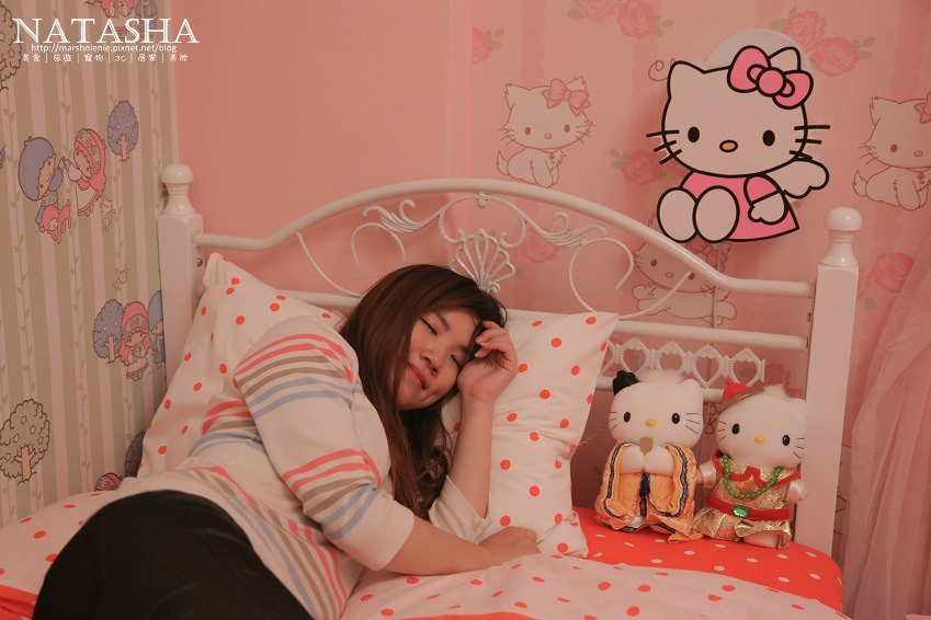 一推開「Kitty粉紅貓雙人房」的門,我就震住了,因為這間房間真的太少女了,
