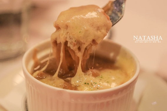 洋蔥湯看起來比較像是焗飯,上面有一層濃濃的Swisse起司焗烤
