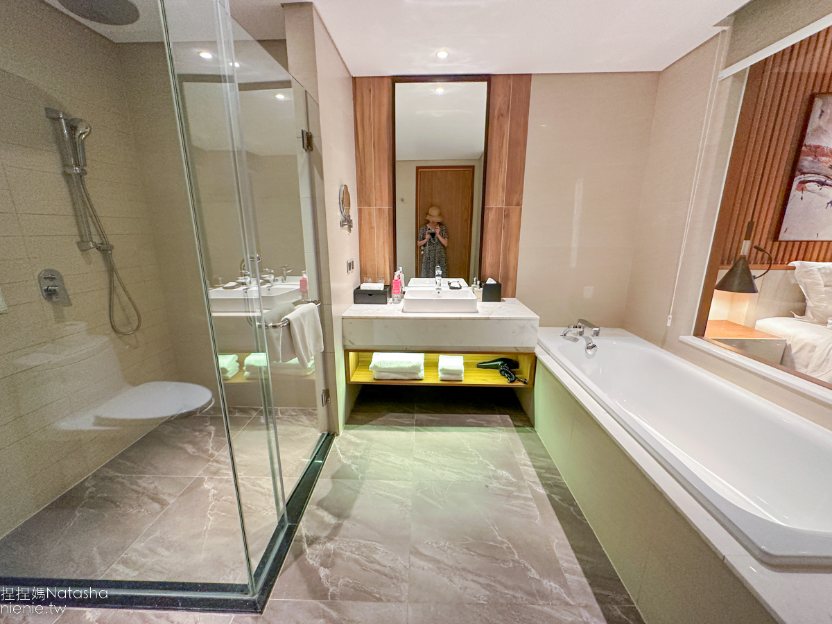 我們這次住的是二館的套房,房間非常寬敞舒適,有超大雙人床、沙發床、冰箱、桌椅、超大衣櫃,重點是還有簡易廚房,非常適合親子家庭,衛浴也超級大間,有寬敞淋浴間及浴缸,浴室幾乎都快要和房間1:1等大了,還有一個同樣很大的陽台,整個住起來就是非常舒服。