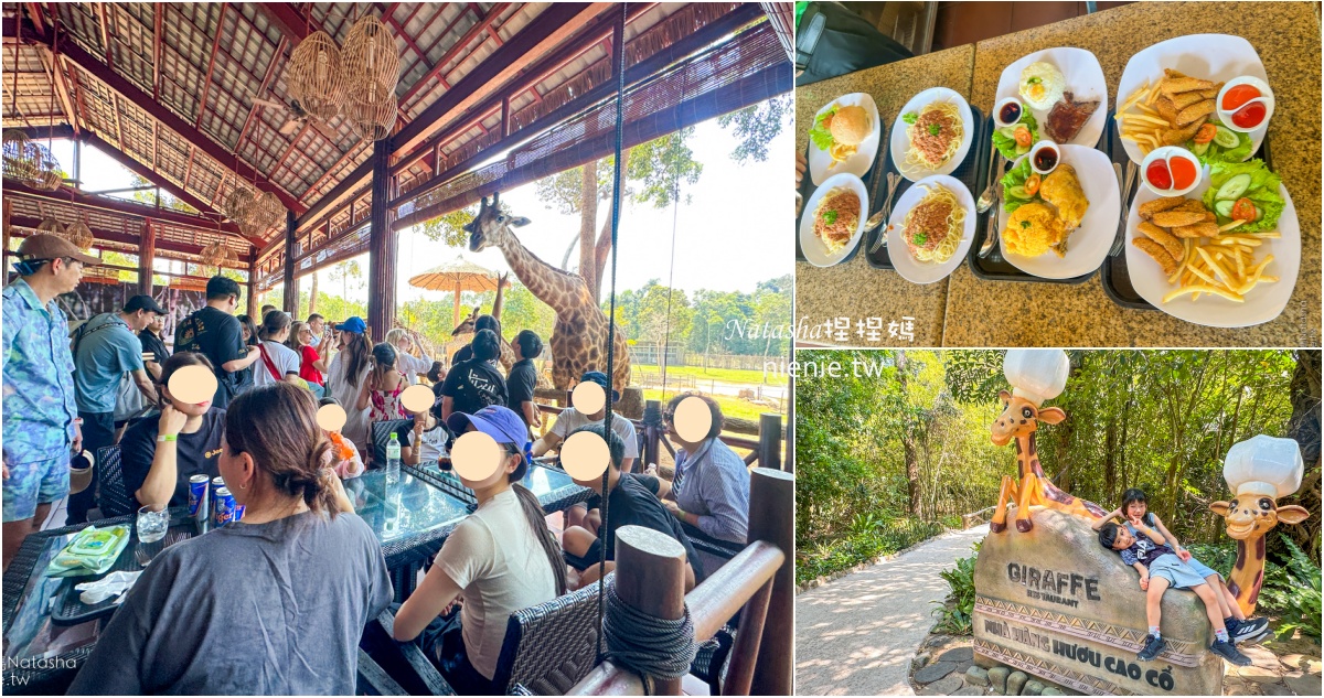 富國島珍珠野生動物園最受歡迎的就是他們的長頸鹿餐廳,半開放式的餐廳空間,不時會有長頸鹿探頭進來,餐廳內有販售長頸鹿吃的紅蘿蔔,但是有數量限制,建議想要餵食長頸鹿的朋友在中午12:00以前抵達餐廳,才有機會買到紅蘿蔔及坐到靠長頸鹿那側的位置。